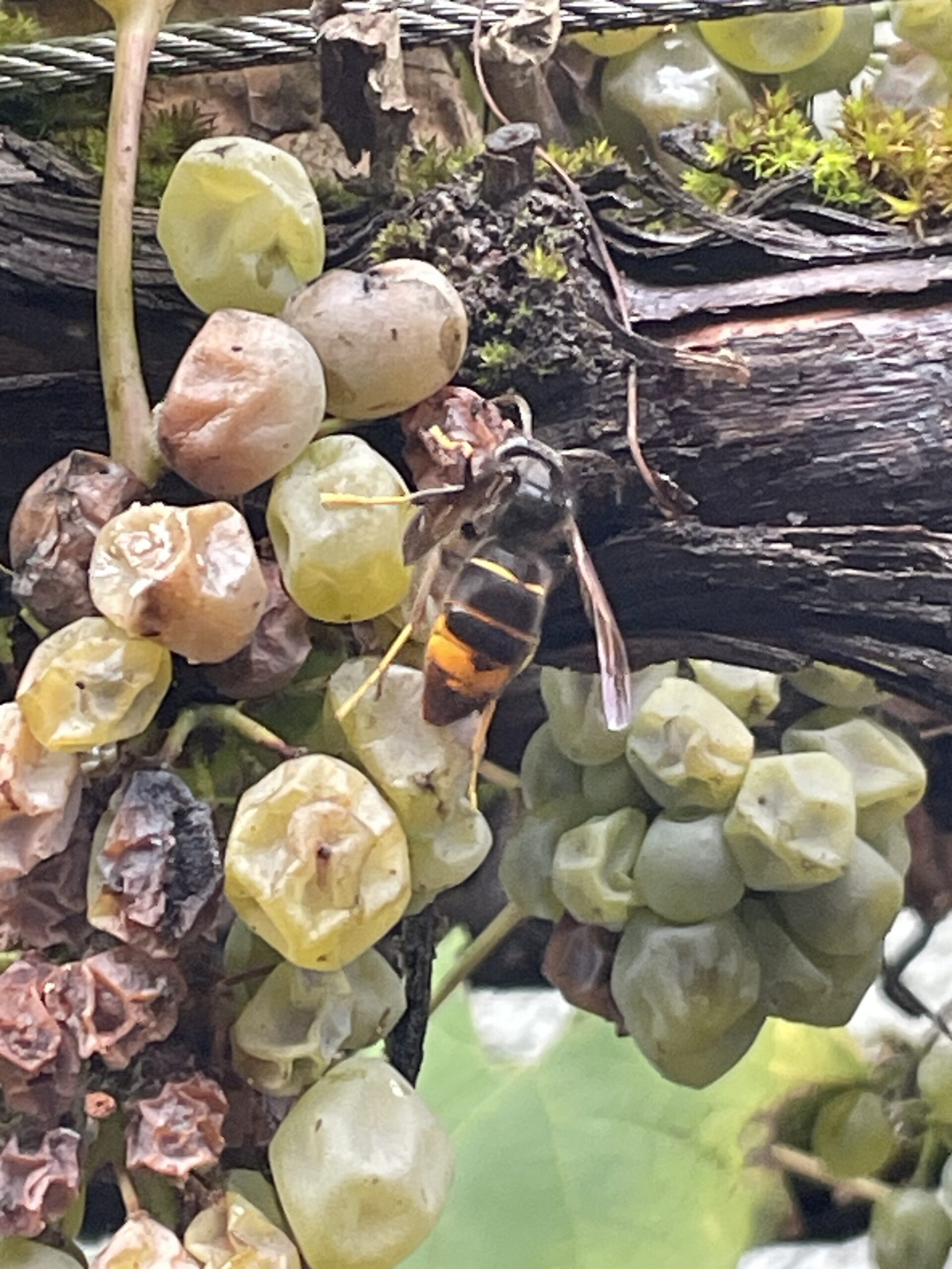 Bei den Trauben sah ich fünf asiatische zwei einheimische und etliche Wespen.